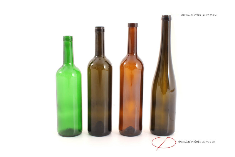 - Max. velikost láhve vína (v/š) 350 x 90 mm