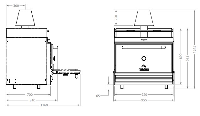 Rozměr: 920x700x1270 vč. komínku Rozměr grilovacího roštu: 760×595 mm Grilovací teplota: 250-350°C Kapacita grilu: cca 110 - 130 jídel Doba nahřátí: 45min Doporučené množství uhlí na zapálení: 15 kg Přibližný čas hoření : 8 hodin Požadavek na odtah: 3200m3 / hod Ekvivalent výkonu: 5 kw Hmotnost: 471 Kg Barva dveří: nerez/černá/červená/žlutá/modrá